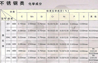 309/309S奧氏體不銹鋼化學成分除特別說明外,以下的化學成分是根據ASTM A167和ASTM A240標準。 3...